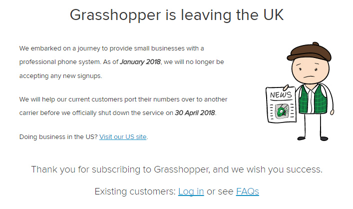 The communications world has been left in a state of shock this week, following the announcement that Grasshopper would be officially closing its UK service, effective immediately. Although the cloud communications company has shown no signs of weakness up to this point, they released a statement on the 15th of January, noting that they would no longer be accepting signups and that services will cease on the 30th of April 2018.